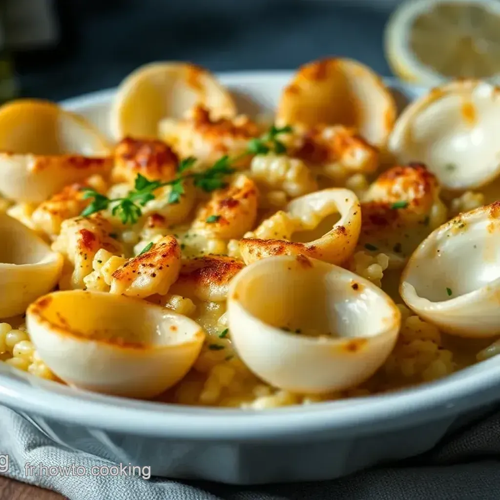 Laissez moi vous guider à travers le monde délicieux des coquilles saint jacques au gratin . accrochez vous, la magie fait son entrée !