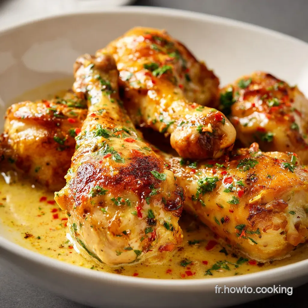Pour une version plus riche, tu pourrais être tenté par une pilon de poulet sauce crème fraîche rapide, mais ici on reste sur une base bouillon très élégante. Si la crème te manque vraiment, tu pourras en ajouter une touche en fin de cuisson.