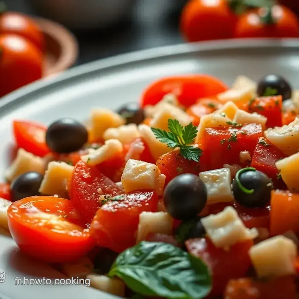 Utilisez un grand saladier pour bien présenter tous ces ingrédients au centre de la table. pour la garniture, une petite branche de persil frais ou des olives entières sur le dessus peuvent faire toute la différence.