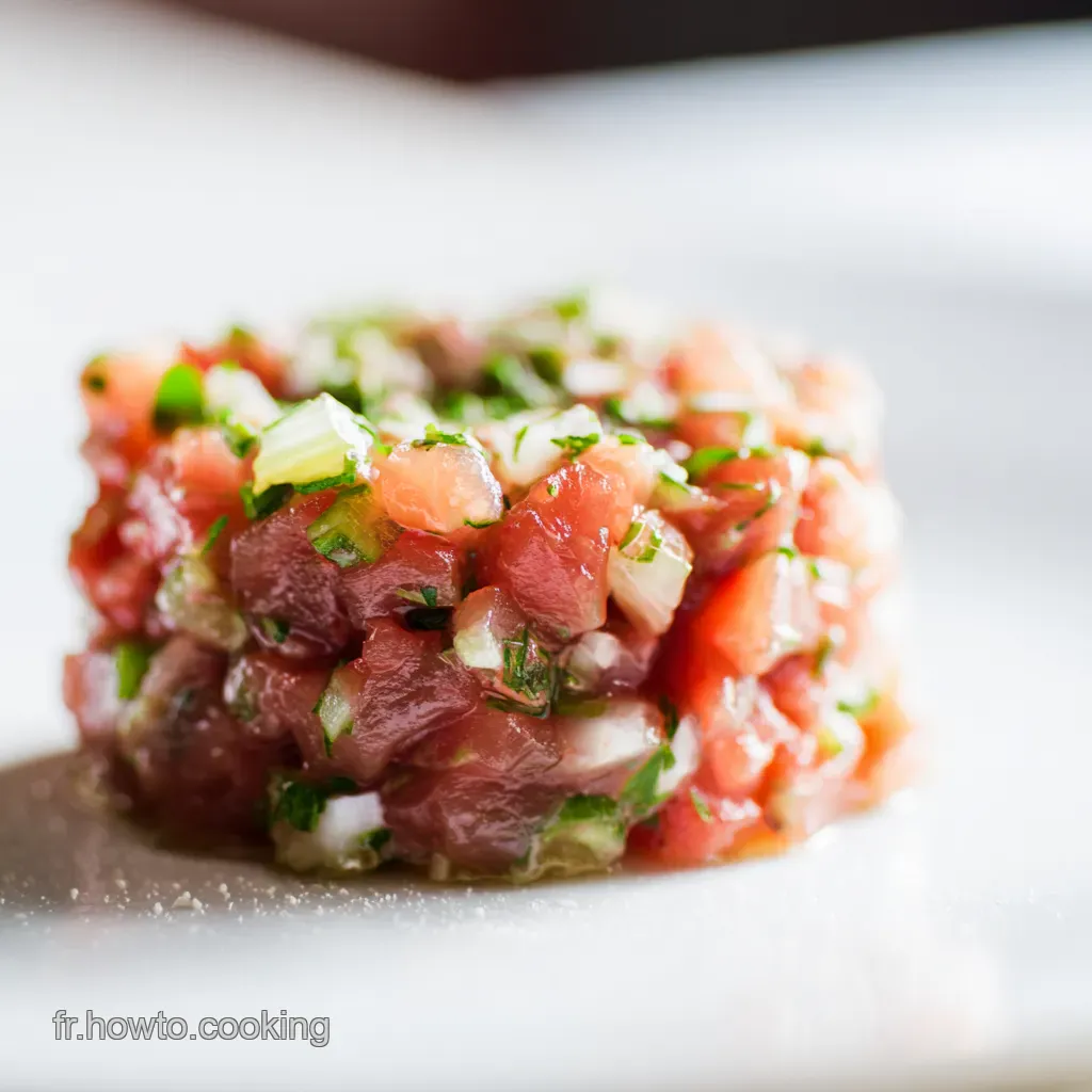Pour un tartare encore plus savoureux, ajoute une touche de piment d'espelette . ça relève le goût, magnifique ! évite de trop mélanger.